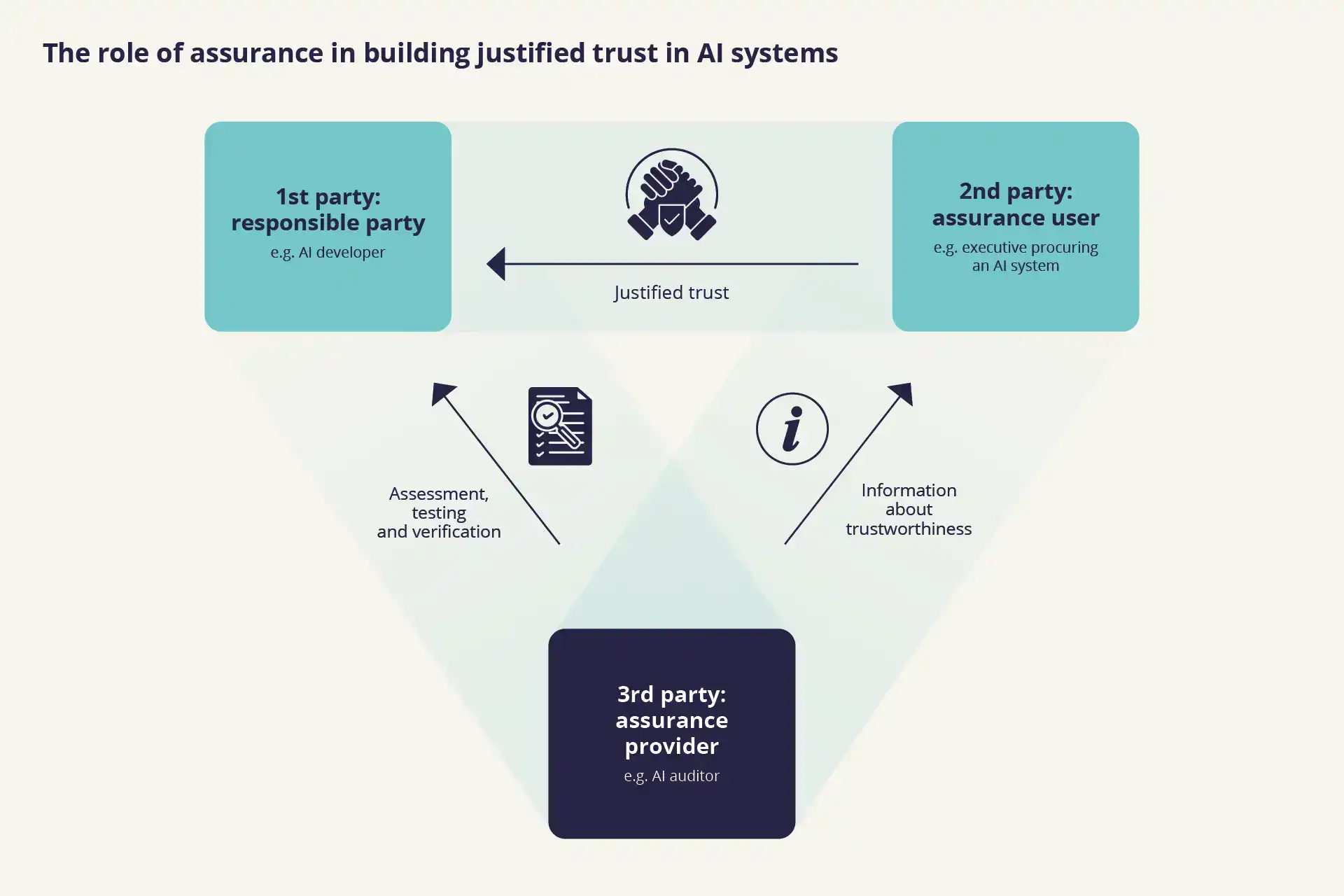 _Figure 1. The relationship between three parties required to establish justified trust. https://cdeiuk.github.io/ai-assurance-guide/trust